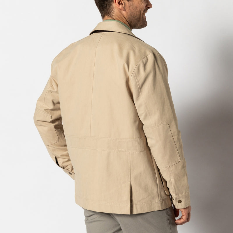 A menswear staple built for outdoor pursuits, the Duck Head Excursion Jacket blends rugged functionality with refined style. With a water-repellent finish, durable elbow patches, and a throat latch for all-weather protection, it’s designed to perform just as well on demanding days in the field as it does elevating your everyday looks. Finished with a sportsman toile lining painted by Tallahassee, FL artist, William Lamb.